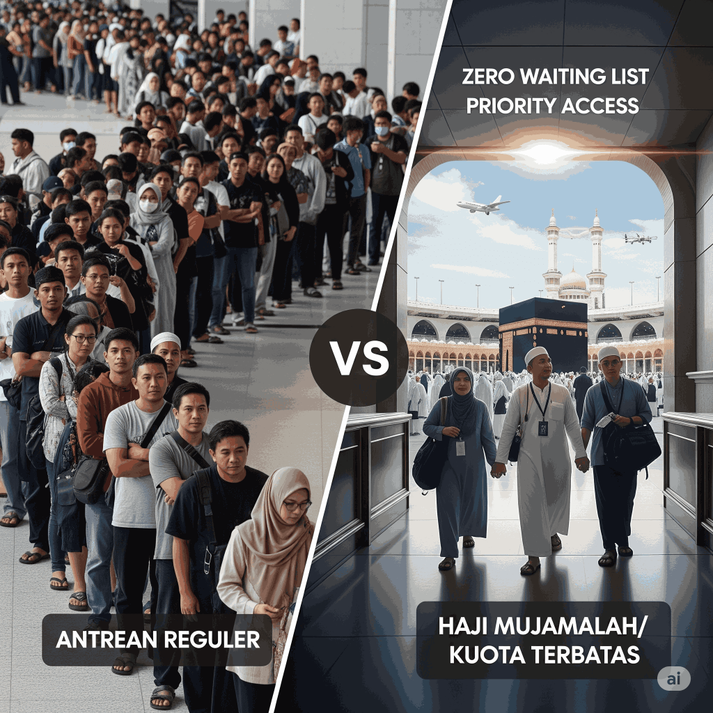 Penting: Karena sifatnya yang sangat terbatas dan eksklusif, biaya Haji Mujamalah jauh lebih tinggi dibandingkan jalur lainnya. Calon jemaah harus memastikan mendaftar melalui PIHK yang memiliki izin resmi dan rekam jejak terpercaya untuk menghindari penipuan.